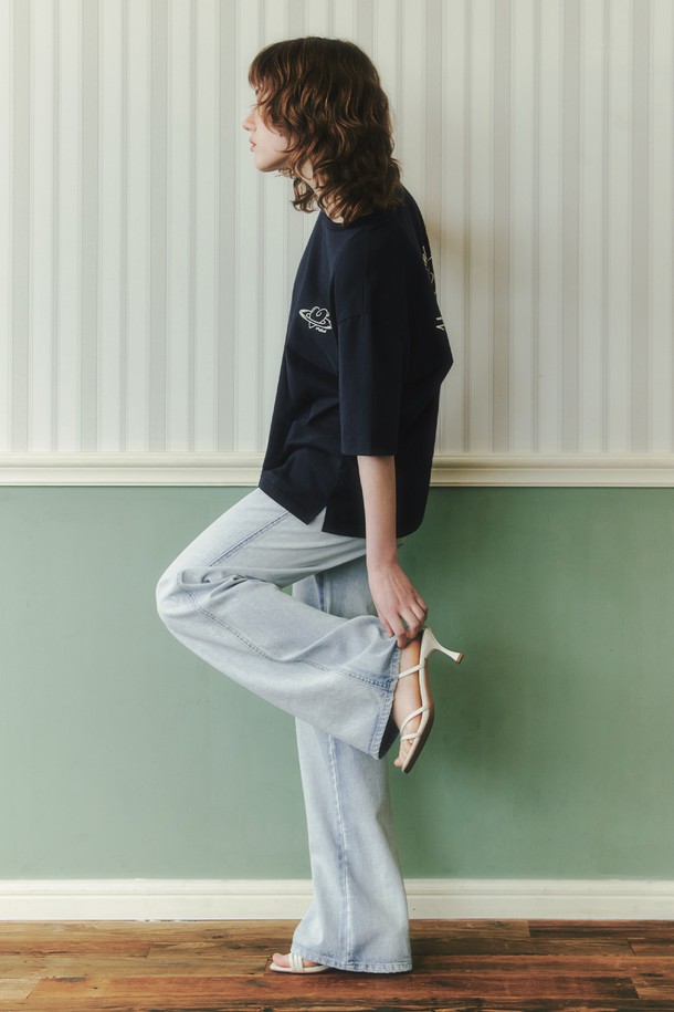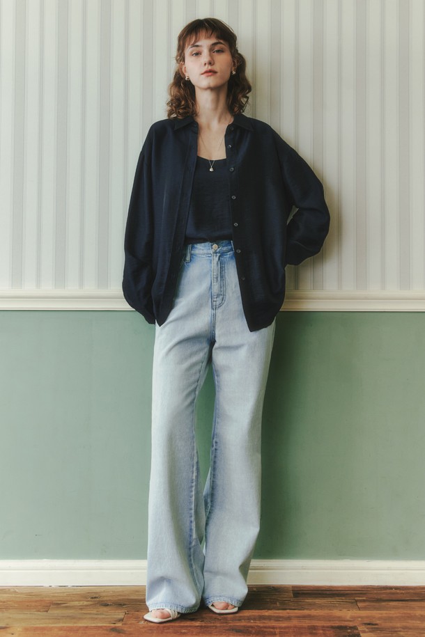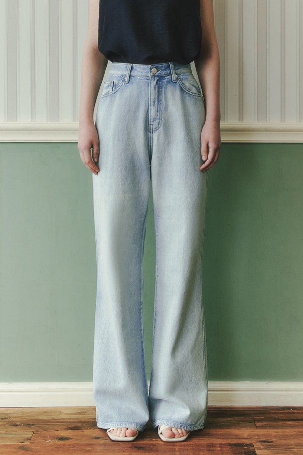 워싱 루즈핏 데님 팬츠 / 아이스블루