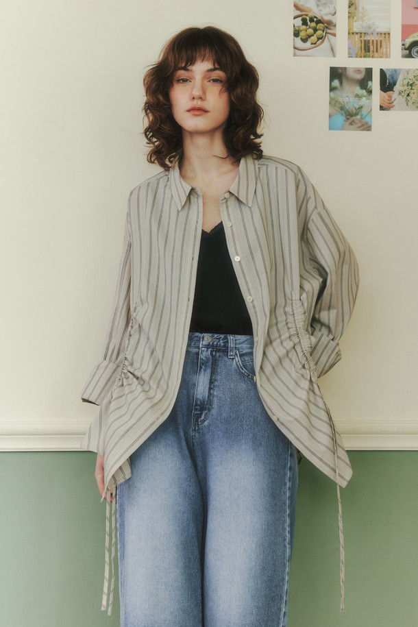 [2컬러] 스트링 스트라이프 셔츠