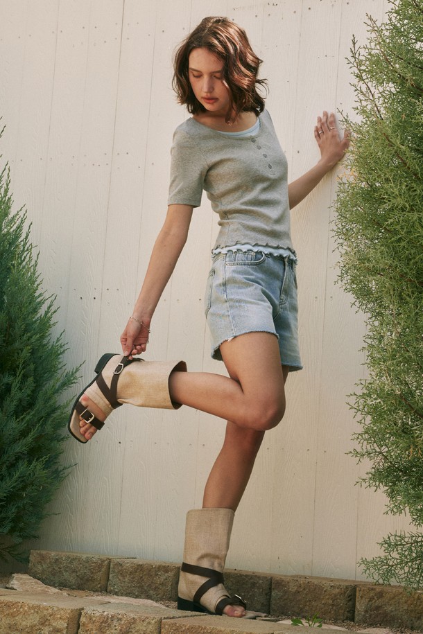 [2컬러] 레이어드 헨리넥 반팔 티셔츠