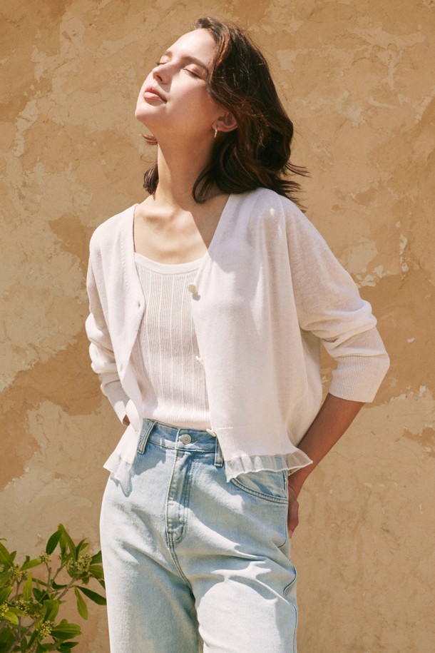 [2컬러] 시어 린넨 레이스 가디건 & 슬리브리스 세트