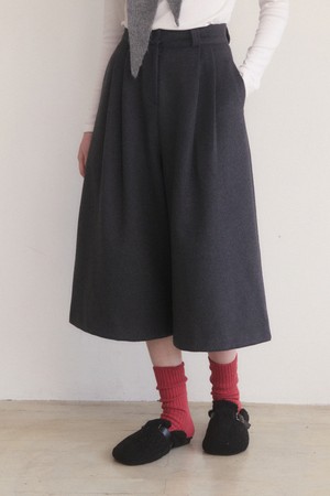 Woolen pintuck long burmuda pants - charcoal