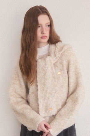 Hoodie muffler knit set - beige