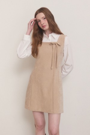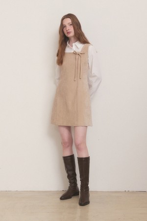 Velvet belted mini dress - beige