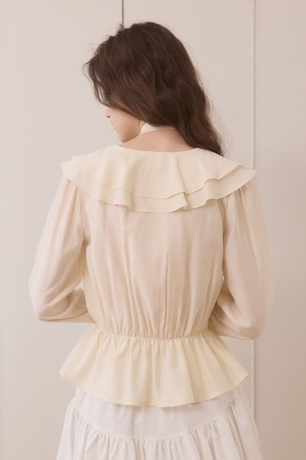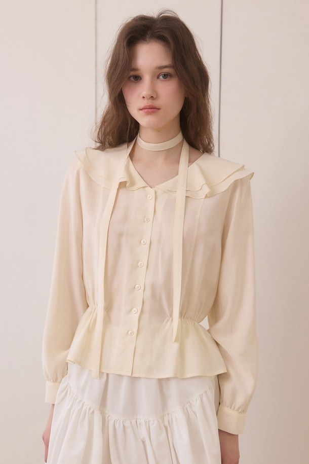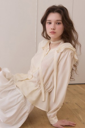 Duffle shirring ruffle tie blouse - cream