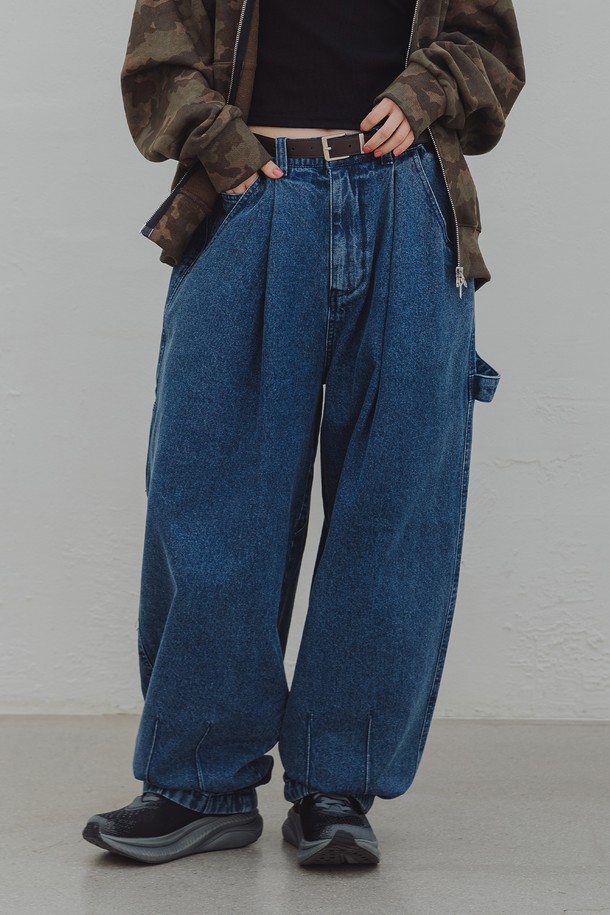 [DELUXE] 워시드 데님 벌룬핏 하프밴딩 팬츠 DLX2923
