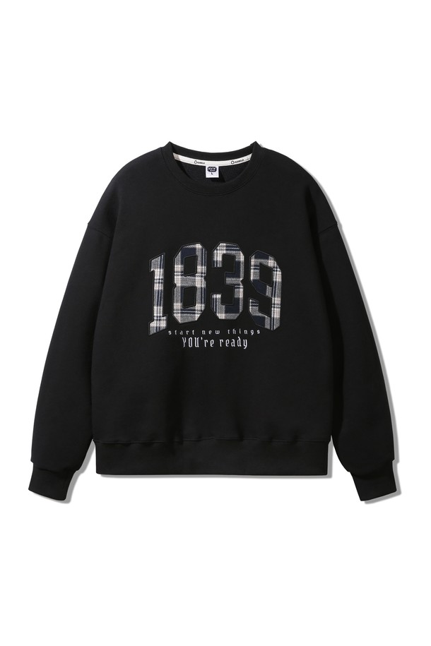 1839 체크 아플리케 오버핏 맨투맨 MAR288 (2 COLOR)