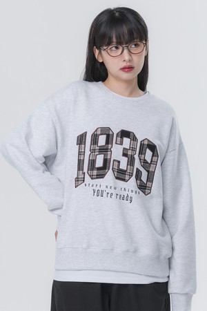 1839 체크 아플리케 오버핏 맨투맨 MAR288 (2 COLOR)
