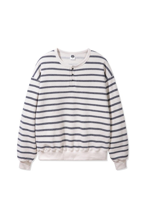앨빈클로 3버튼 헨리넥 피치스킨 스트라이프 오버핏 맨투맨 MAR339 (3 COLOR)