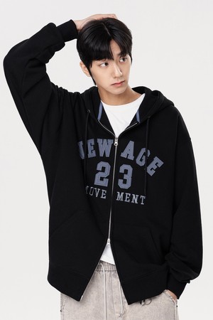 [기모] NEW AGE 패치 투웨이 오버핏 후드집업 AZH682 (2 COLOR)