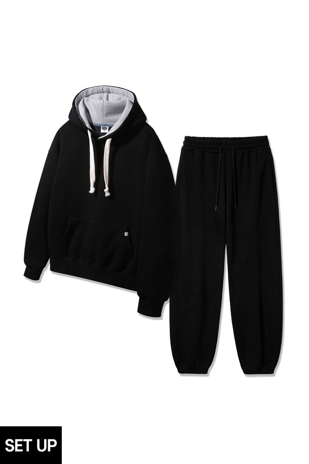 [SET][더블코튼/기모] 앨빈클로 후드 배색 무지 오버핏 후드티 조거/세미와이드 팬츠 셋업