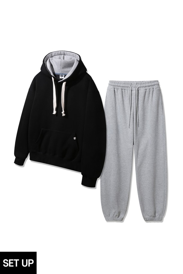 [SET][더블코튼/기모] 앨빈클로 후드 배색 무지 오버핏 후드티 조거/세미와이드 팬츠 셋업