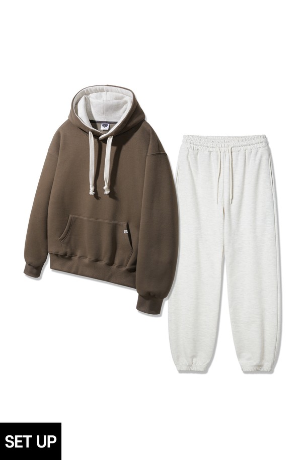 [SET][더블코튼/기모] 앨빈클로 후드 배색 무지 오버핏 후드티 조거/세미와이드 팬츠 셋업