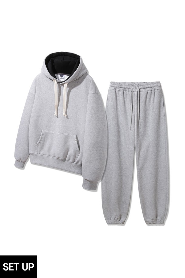 [SET][더블코튼/기모] 앨빈클로 후드 배색 무지 오버핏 후드티 조거/세미와이드 팬츠 셋업