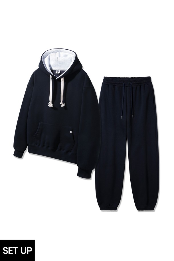[SET][더블코튼/기모] 앨빈클로 후드 배색 무지 오버핏 후드티 조거/세미와이드 팬츠 셋업
