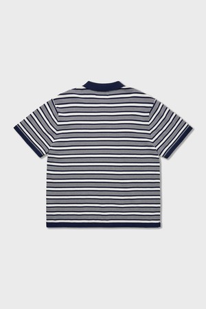 70s Multi Stripe Cotton Knit Polo Shirts Navy