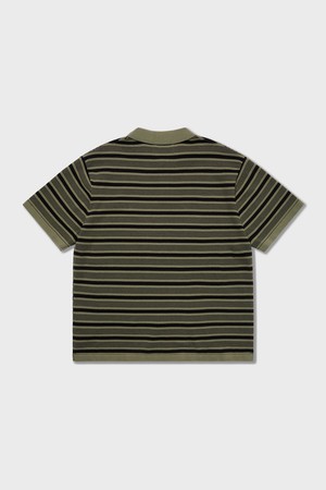 70s Multi Stripe Cotton Knit Polo Shirts Olive