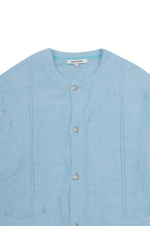 헤어리 크루넥 가디건 (라이트 블루)은 세련되고 고급스러운 스타일을 연출하는 데일리 및 오피스룩에 적합한 제품입니다. 부드럽고 포근한 촉감의 나일론 소재에 헤어리 원사 텍스처를 더해 은은한 광택감과 자연스러운 볼륨감을 선사합니다. 두꺼운 두께감으로 가을, 겨울 시즌 따뜻하게 착용 가능하며, 세미오버핏으로 편안한 착용감을 제공합니다. 크루넥 디자인과 톤온톤의 금속 단추, 포켓 디테일이 돋보이는 클래식하고 미니멀한 디자인의 긴 소매 가디건입니다.