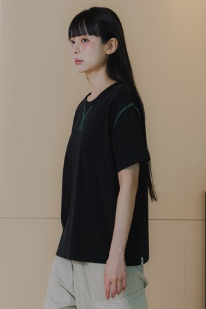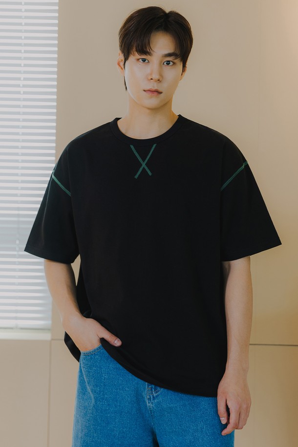 배색 스티치 포인트 반팔 티셔츠 BK4216