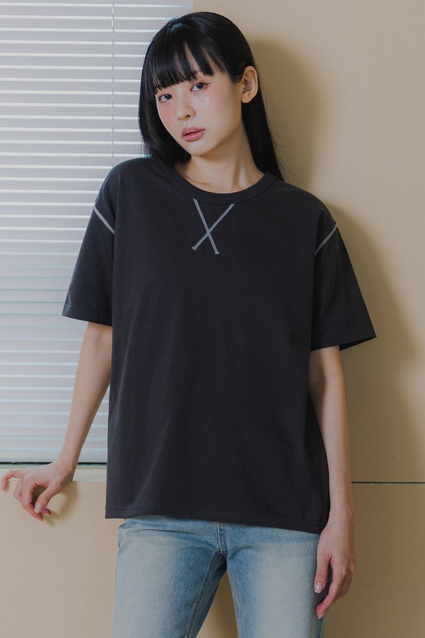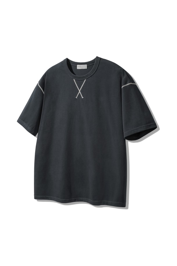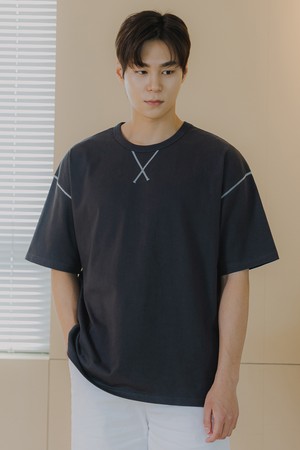 배색 스티치 포인트 반팔 티셔츠 BK4216