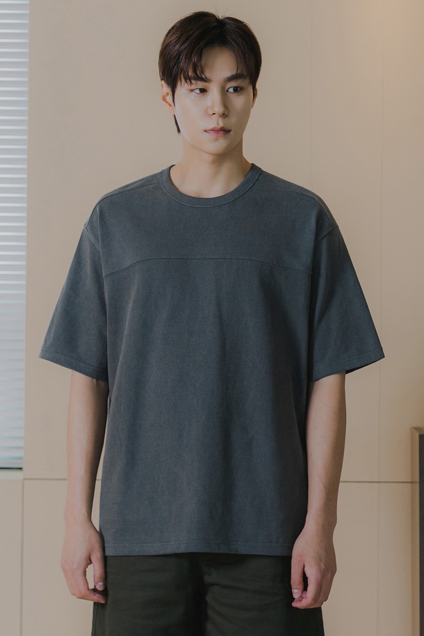 피그먼트 어깨 절개 반팔 티셔츠 BK4208
