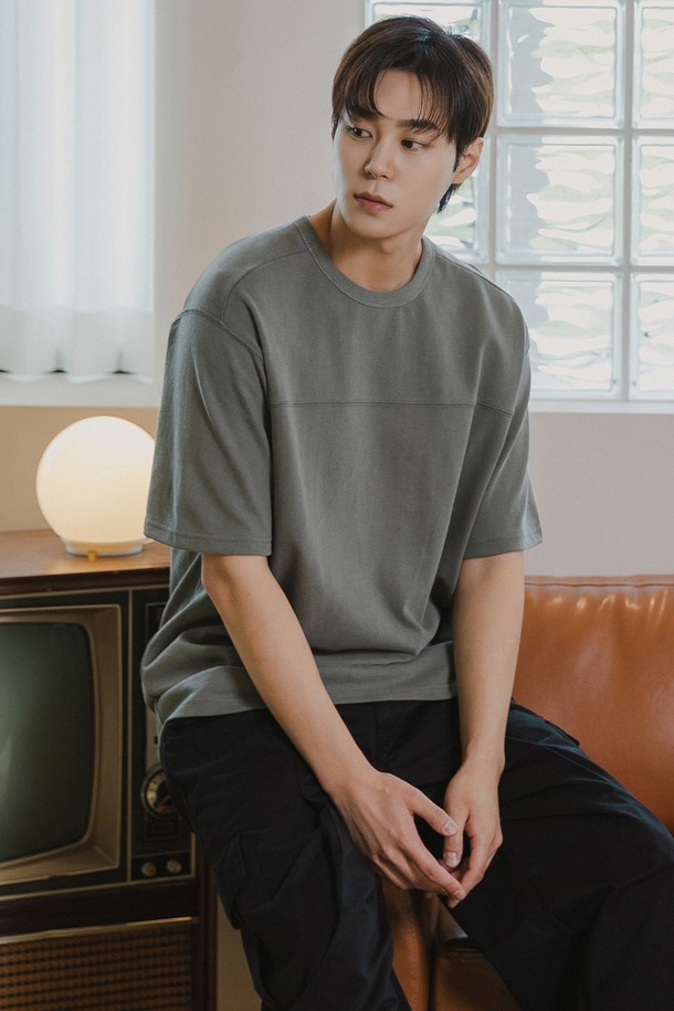 피그먼트 어깨 절개 반팔 티셔츠 BK4208