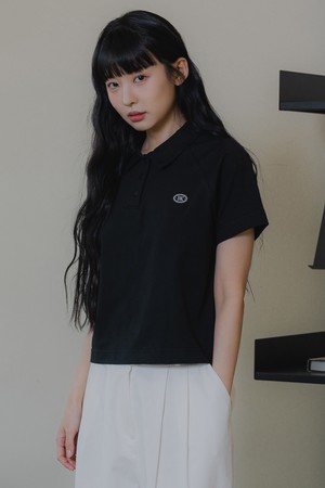 세미 크롭 로고 카라 반팔 티셔츠 BK4215