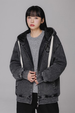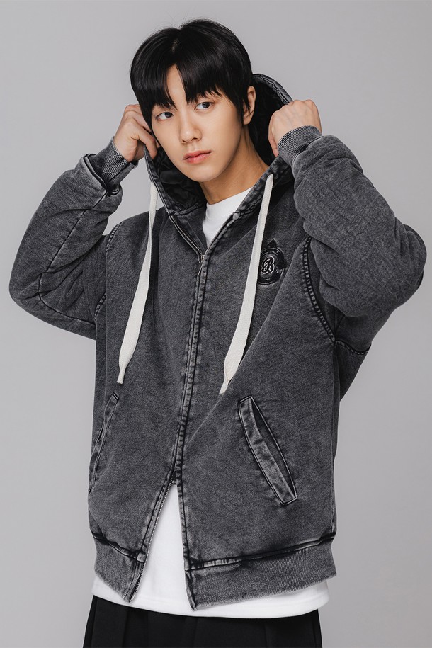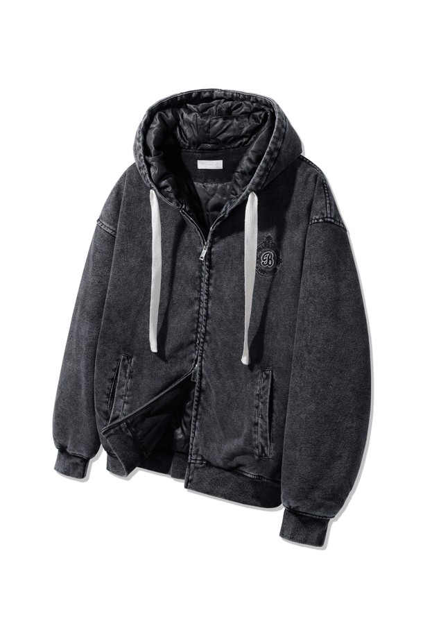 [누빔] 헤리티지 퀄팅 피그먼트 로고 패딩 후드집업 BK7834_블랙