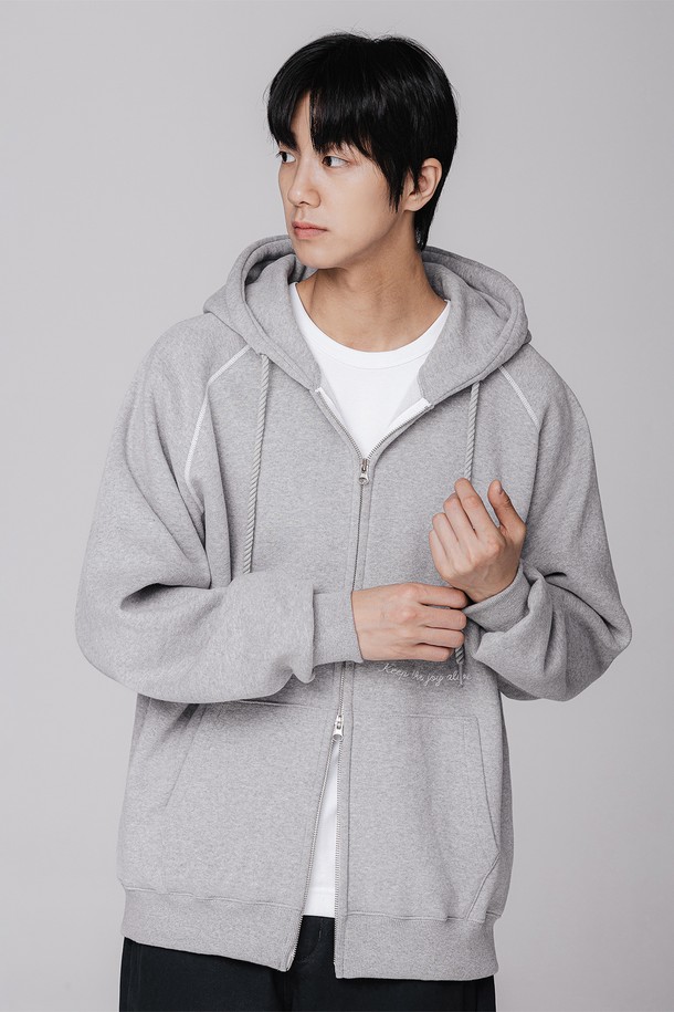 [기모] 스마일 피치 브러쉬 래글런 후드집업 BK7976_그레이