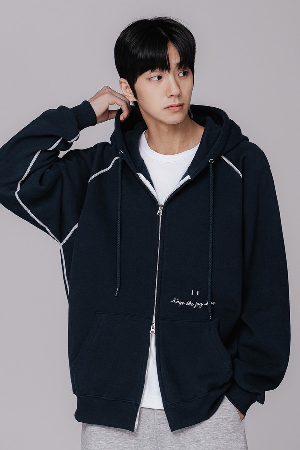 [기모] 스마일 피치 브러쉬 래글런 후드집업 BK7976_네이비