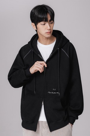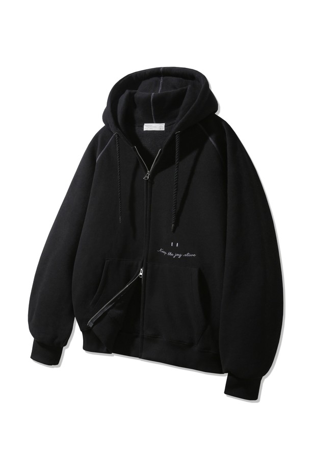 [기모] 스마일 피치 브러쉬 래글런 후드집업 BK7976_블랙