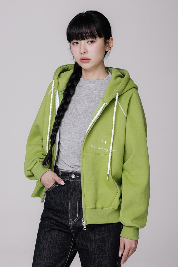 [기모] 스마일 피치 브러쉬 래글런 후드집업 BK7976_올리브