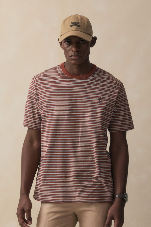 스트라이프 반팔 티셔츠 (오렌지) (BBNPMB204AFFM)