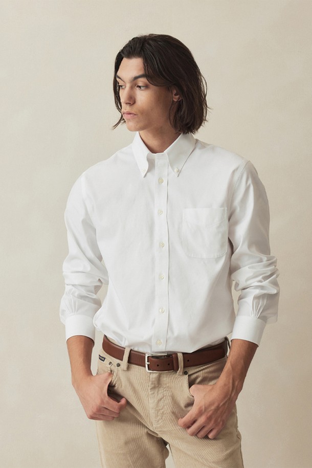 슬림핏 논아이론 핀포인트 폴로버튼다운 드레스셔츠 (화이트) (BBTSMM9385A)