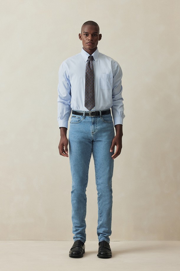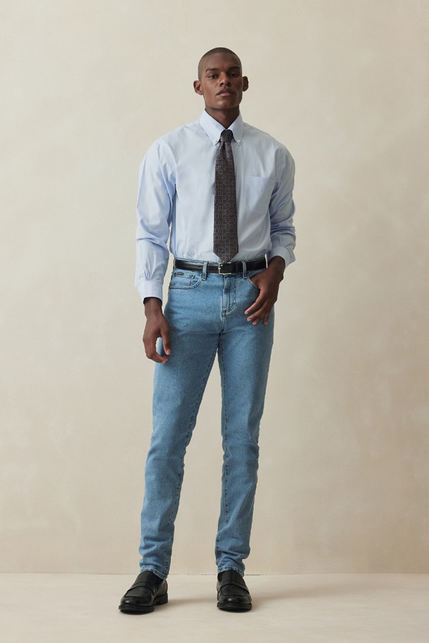 레귤러핏 논아이론 핀포인트 폴로버튼다운 드레스셔츠 (라이트블루) (BBTSMM9369L)