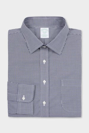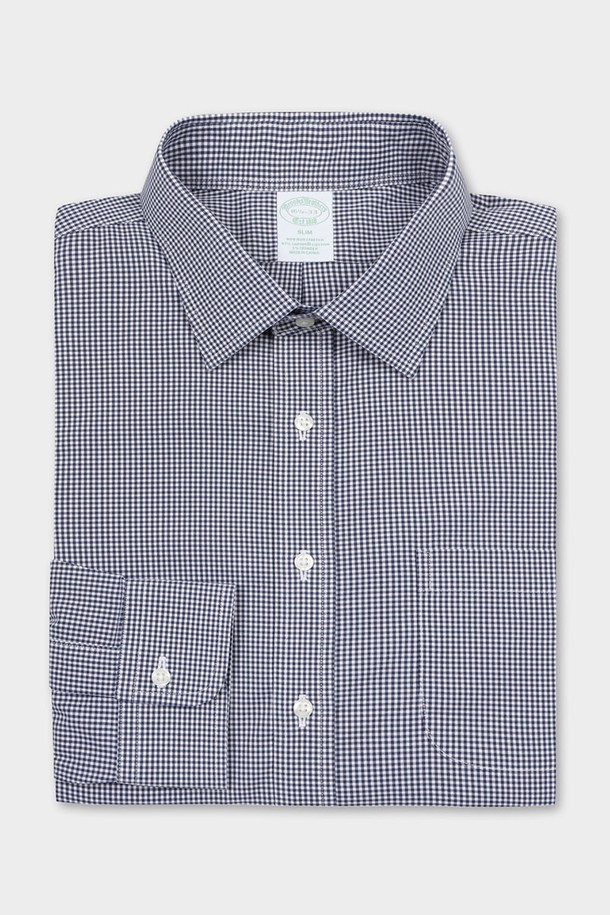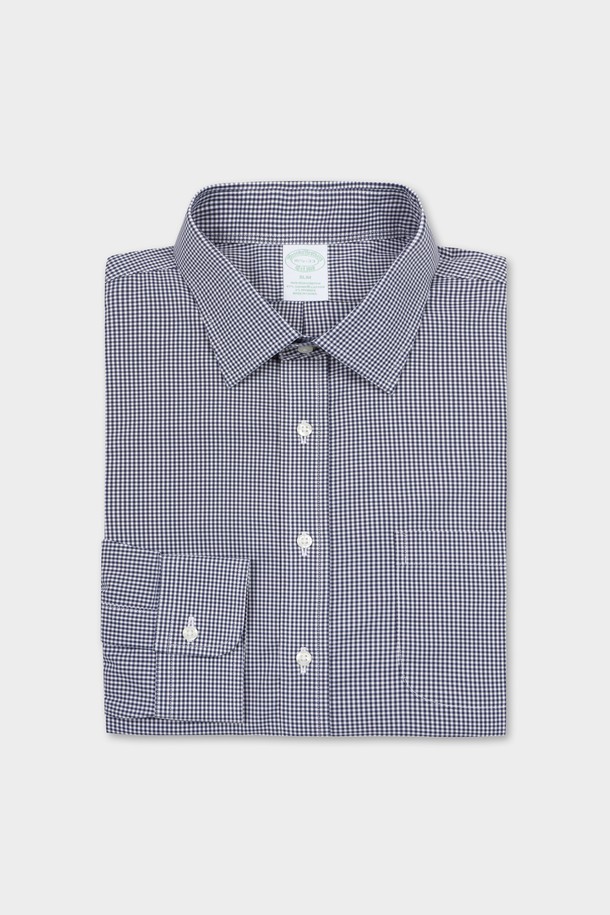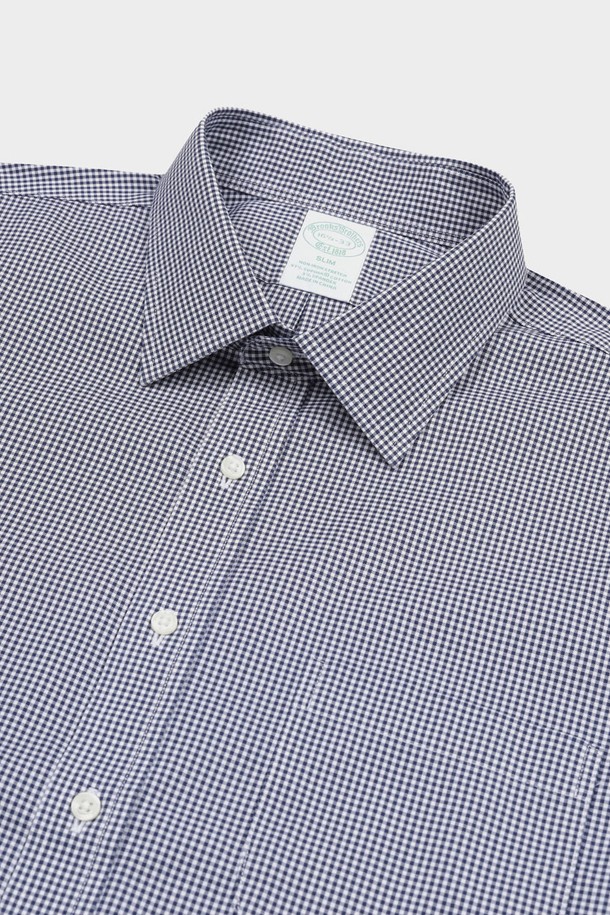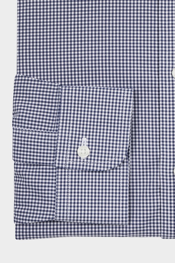 슬림핏 논아이론 에인즐리 깅엄 드레스셔츠 (네이비) (BBTSMM9644Q)