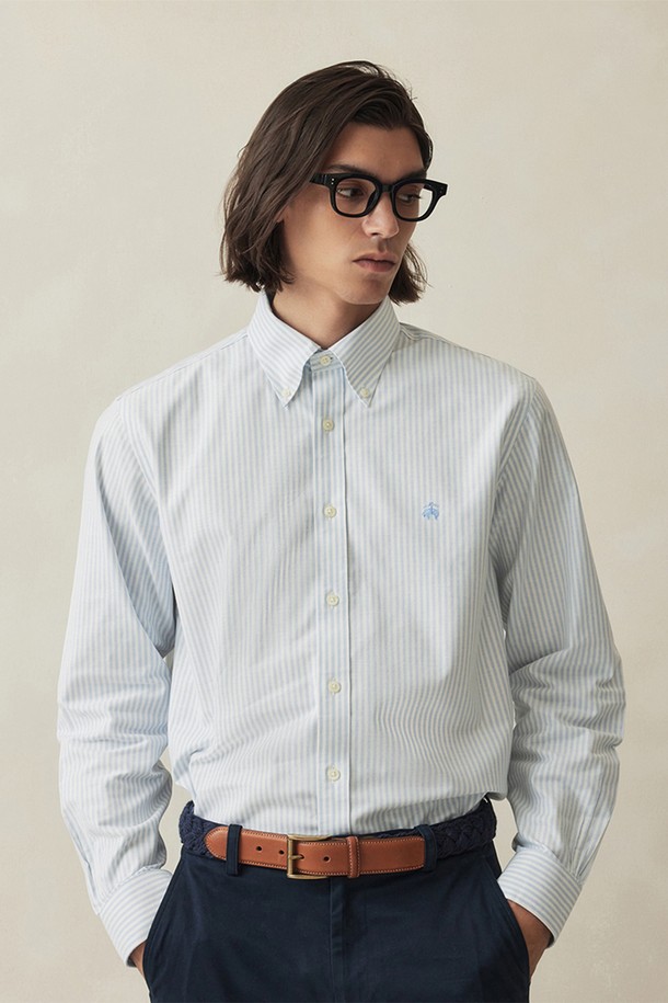 레귤러핏 논아이론 옥스포드 뱅갈스트라이프 스포츠셔츠 (라이트블루) (BBTHMF9968L)