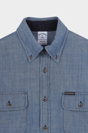샴브레이 엘보 패치 워크셔츠 (인디고) (BBTHMFF305)