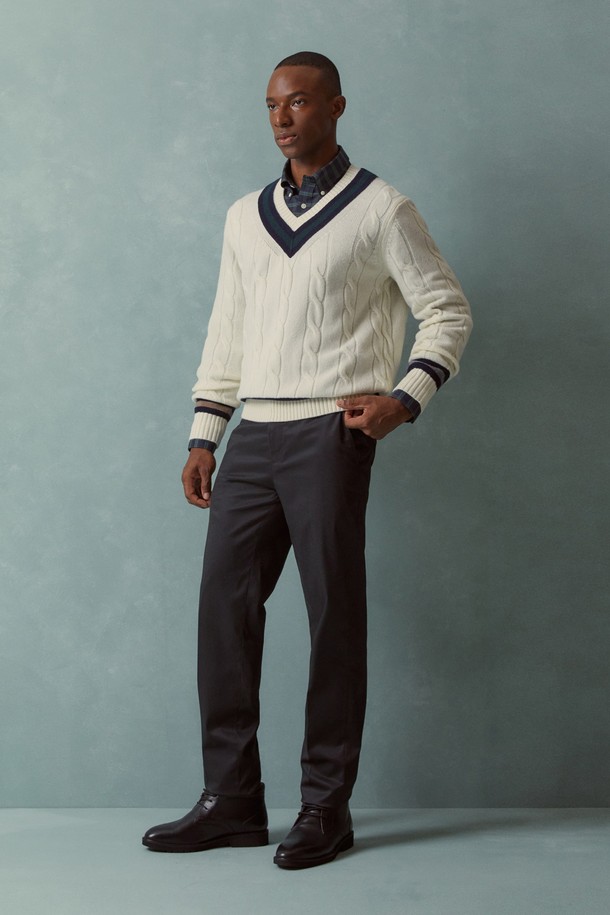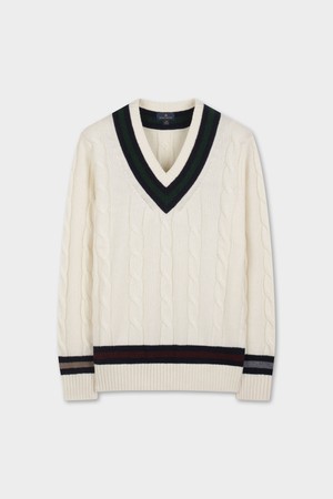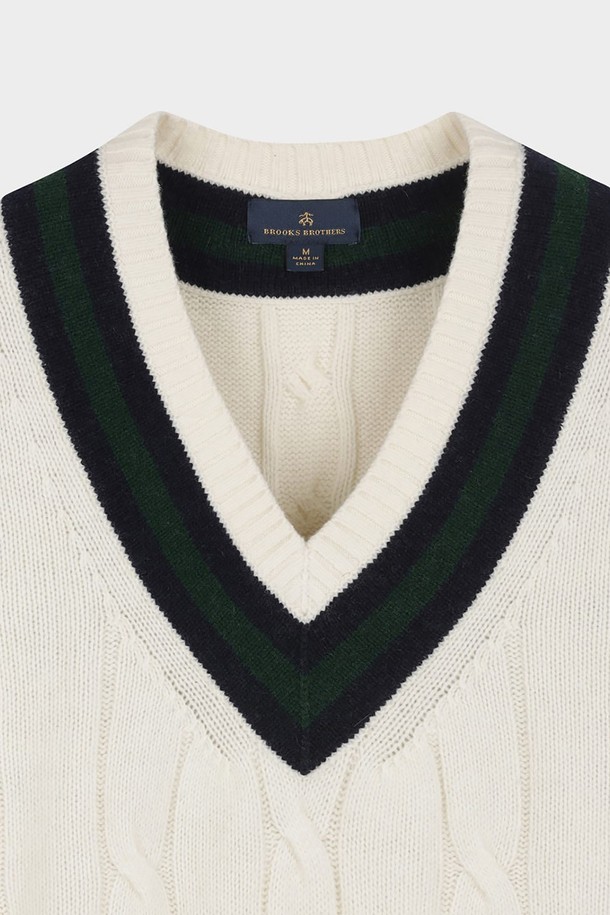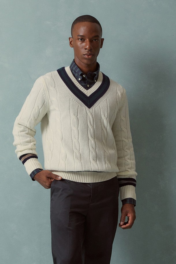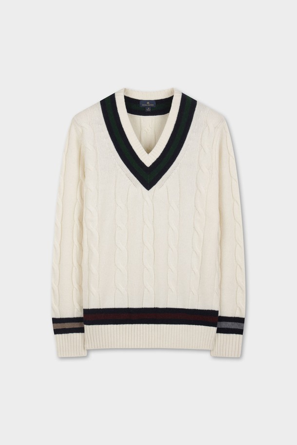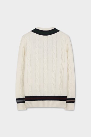 울 테니스 케이블 브이넥 스웨터 (아이보리) (BBWNMFF402)