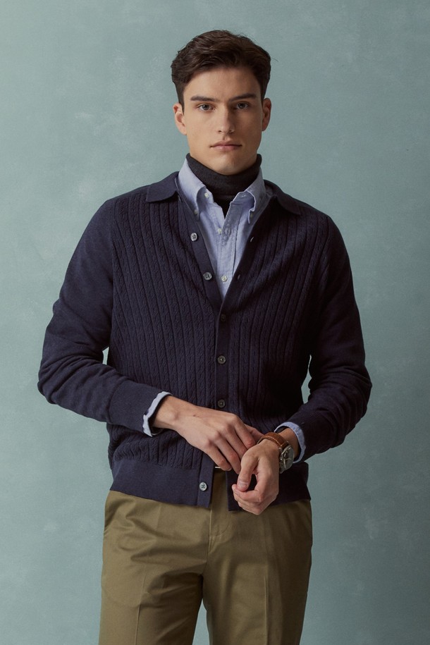 코튼 케이블 폴로 가디건 (네이비) (BBWCMMF302)
