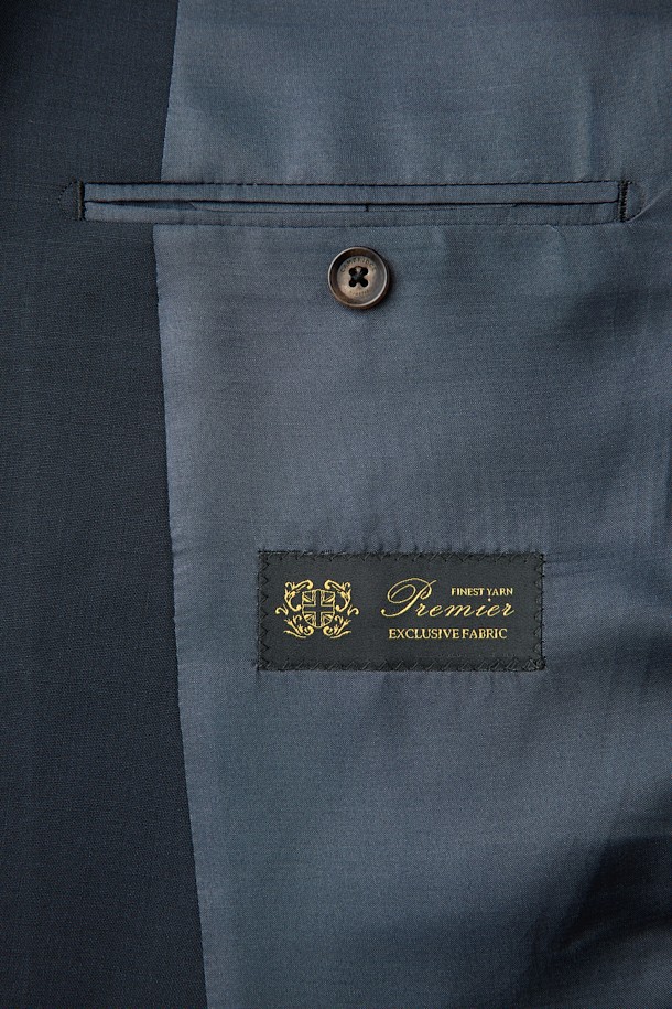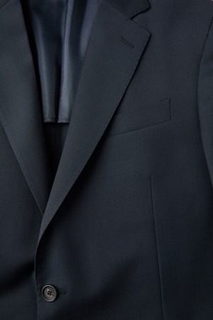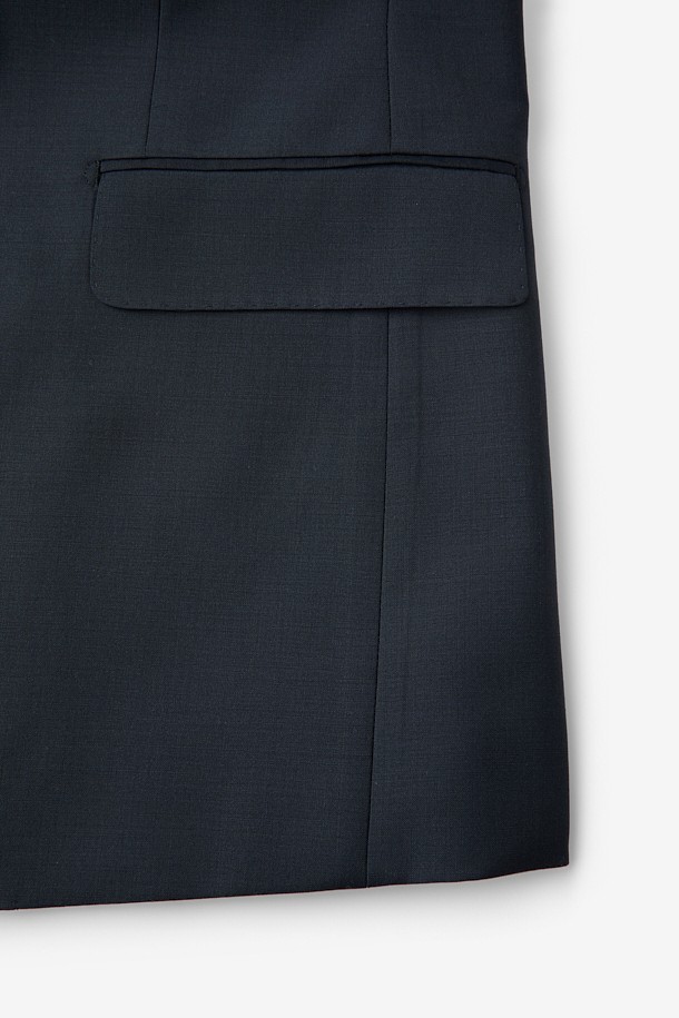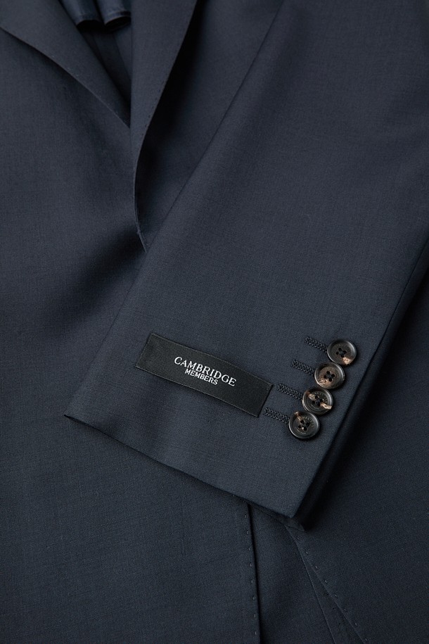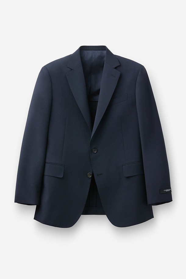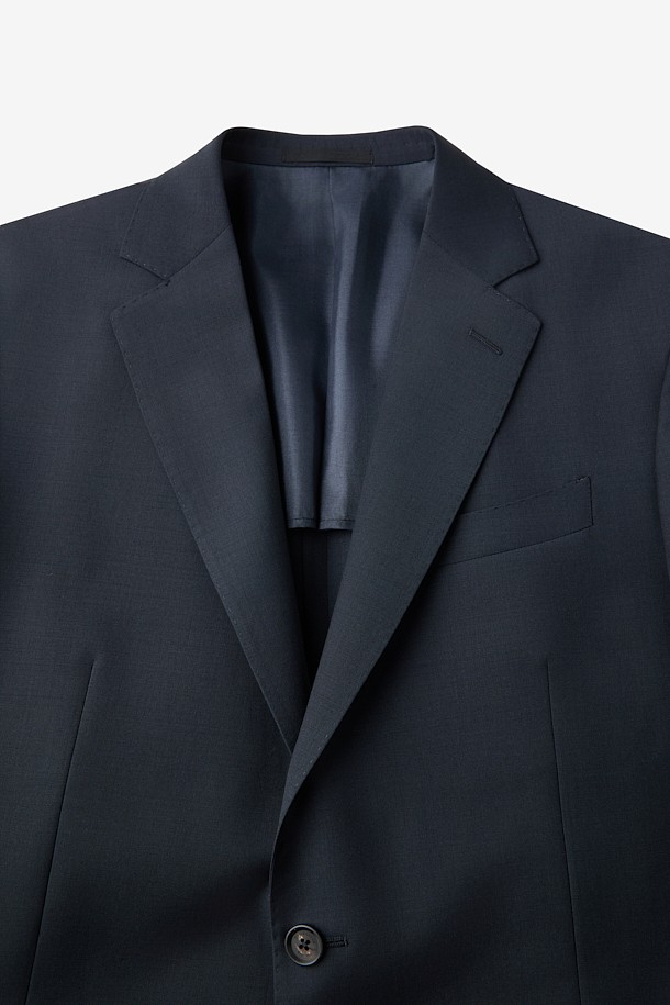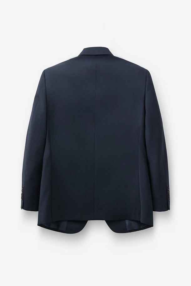 울 조직감 솔리드 수트 자켓 - 네이비