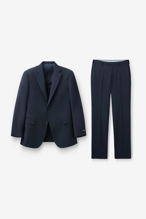 울 조직감 솔리드 수트 - 네이비
