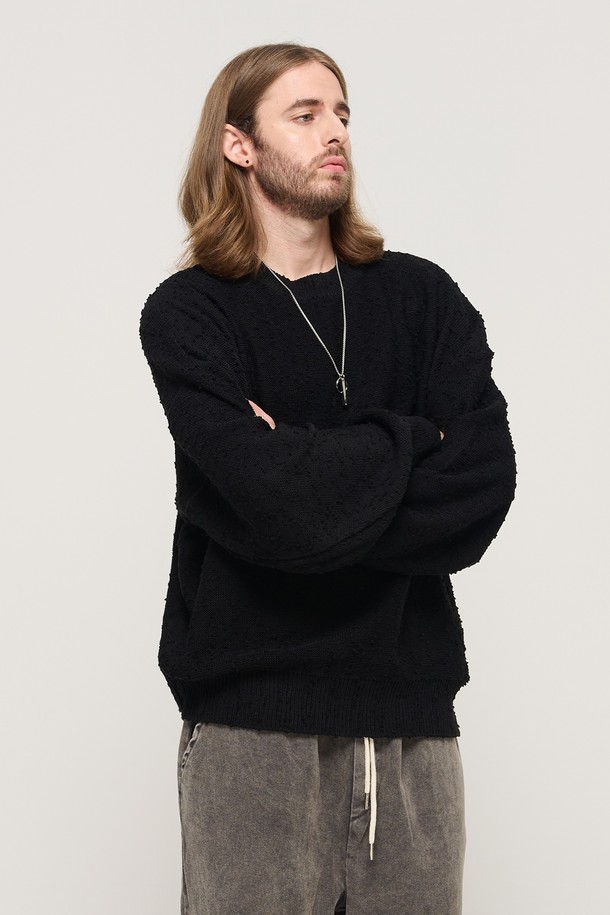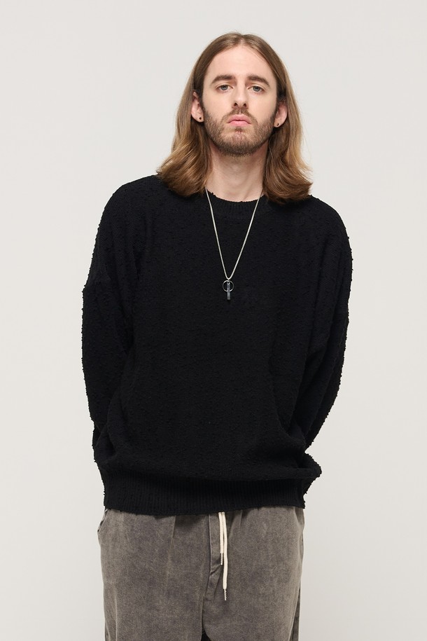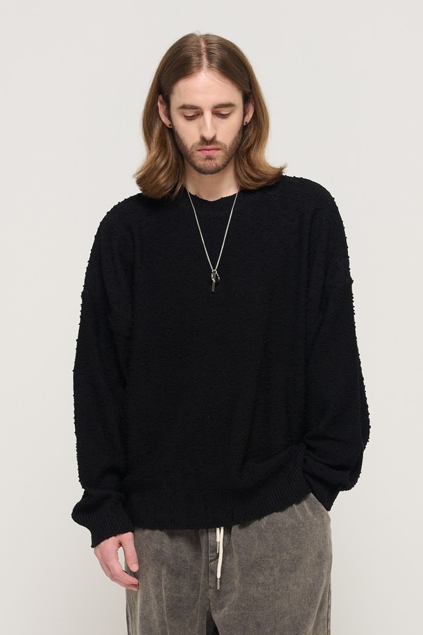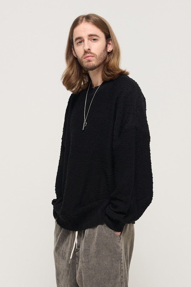 DROP BLOCK KNIT SEMI-OVERSIZED SWEATER (BLACK)