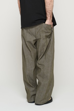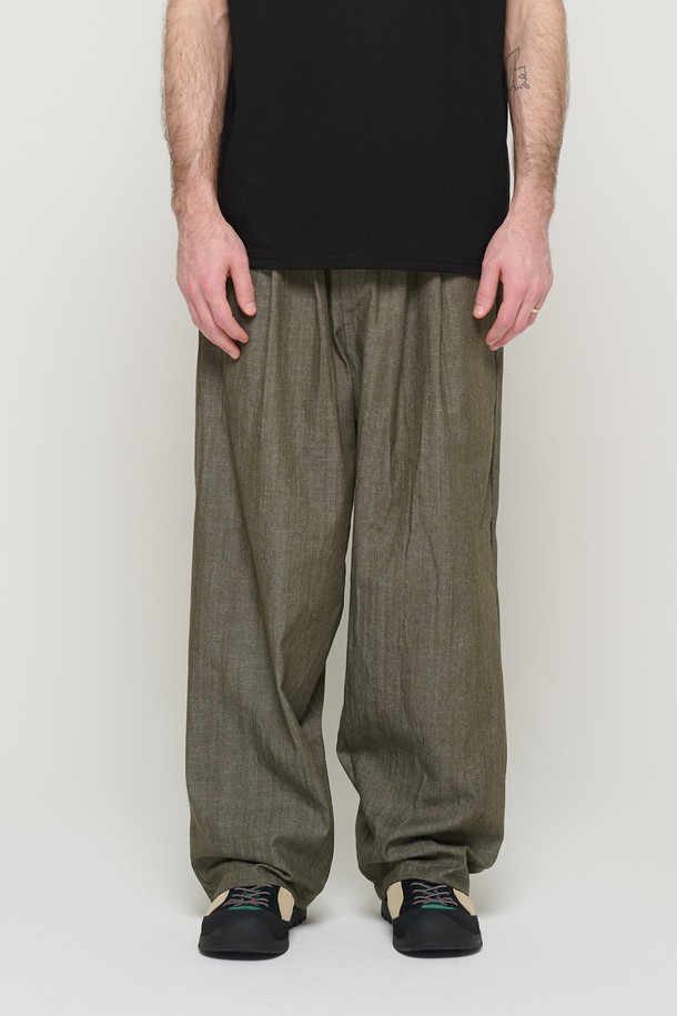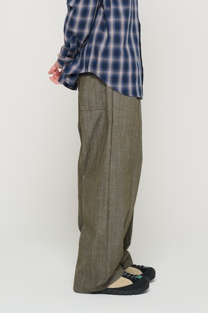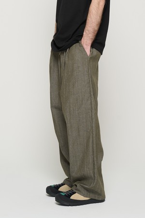 TWO-TUCK LINEN WIDE BANDING PANTS (KHAKI)