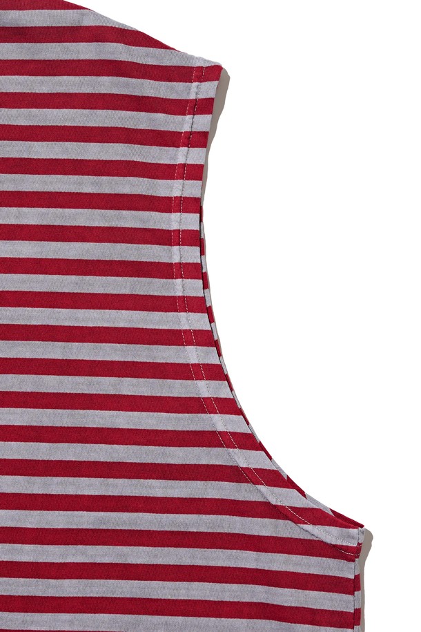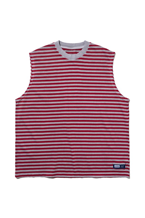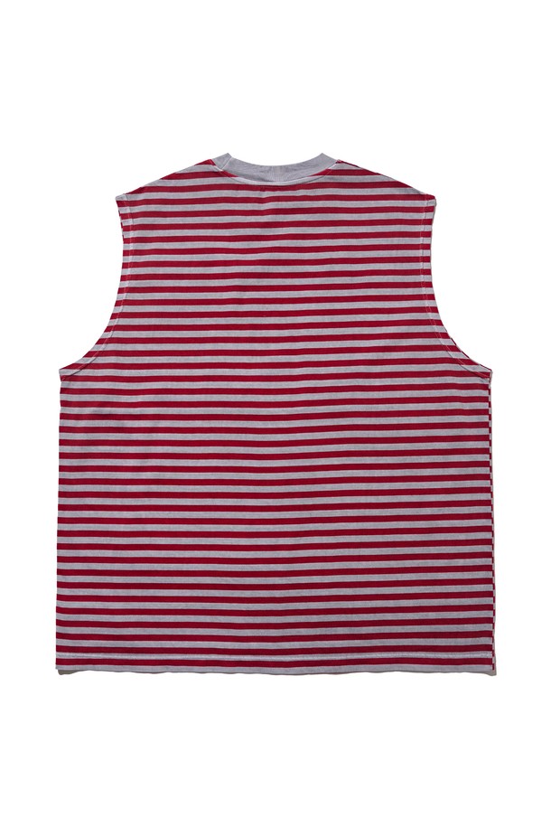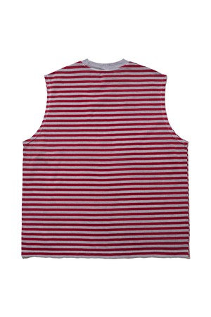STRIPE OVERFIT SLEEVELESS SHIRT (RED)