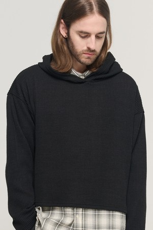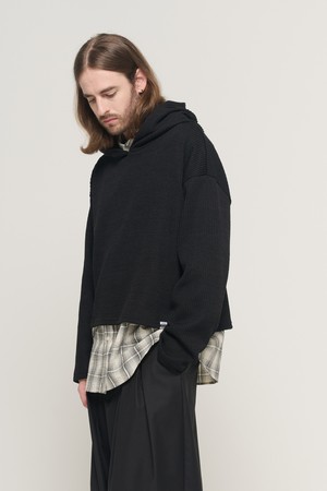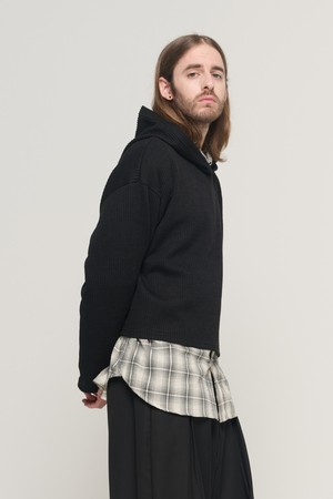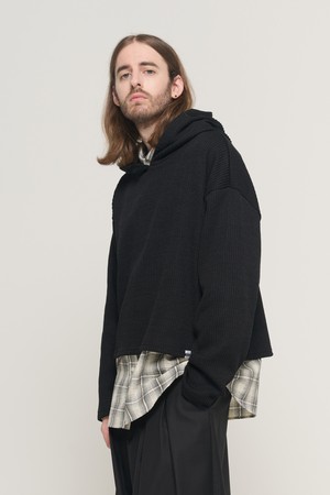 HOOD CROP LAYERED LONG-SLEEVE KNIT (BLACK)