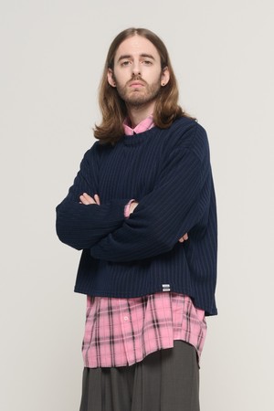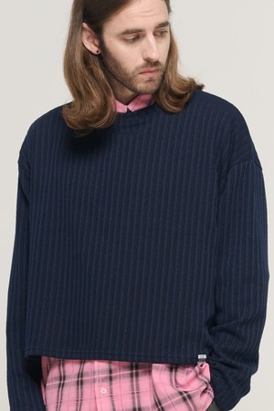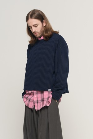 CB RIBBED ROUND CROP OVER KNIT (NAVY)