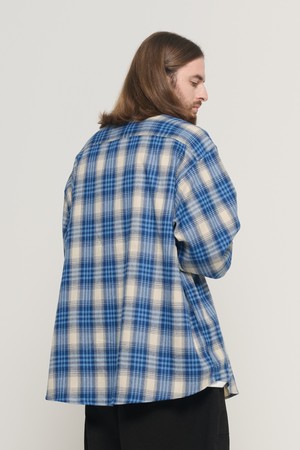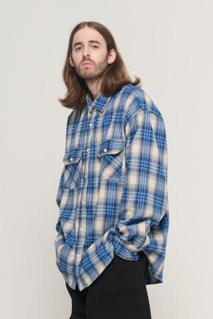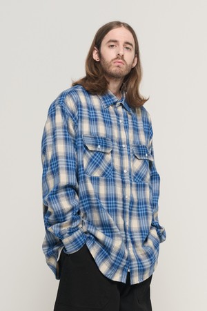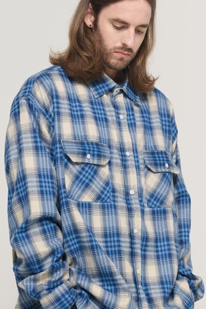 POCKET FLANNEL OVER CHECK SHIRT (BLUE)