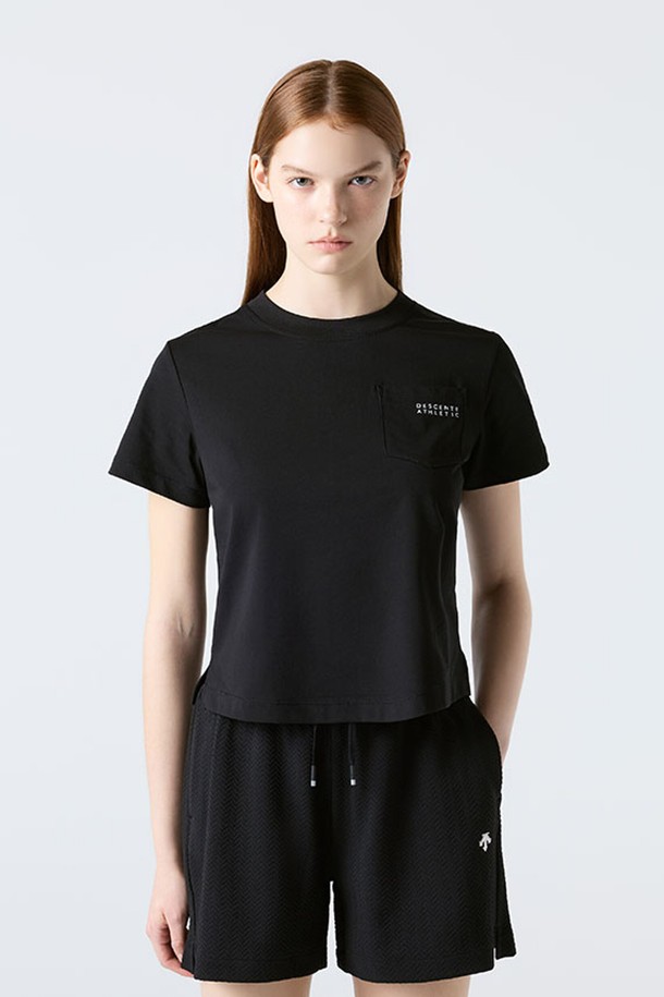 우먼스 쿨링 세미 크롭 반팔 티셔츠 블랙 SR112PTS14