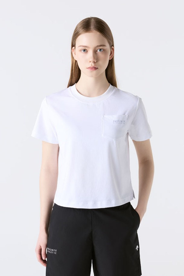 우먼스 쿨링 세미 크롭 반팔 티셔츠 화이트 SR112PTS14