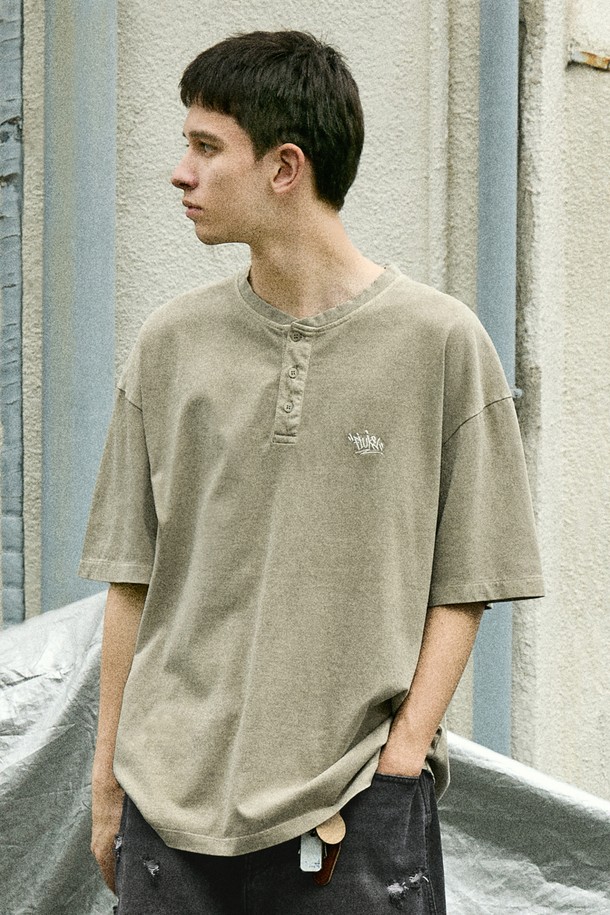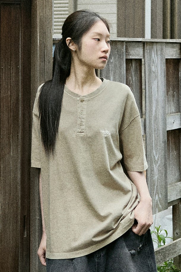 시그니처 로고 피그먼트 헨리넥 티셔츠 FST748 / 4color